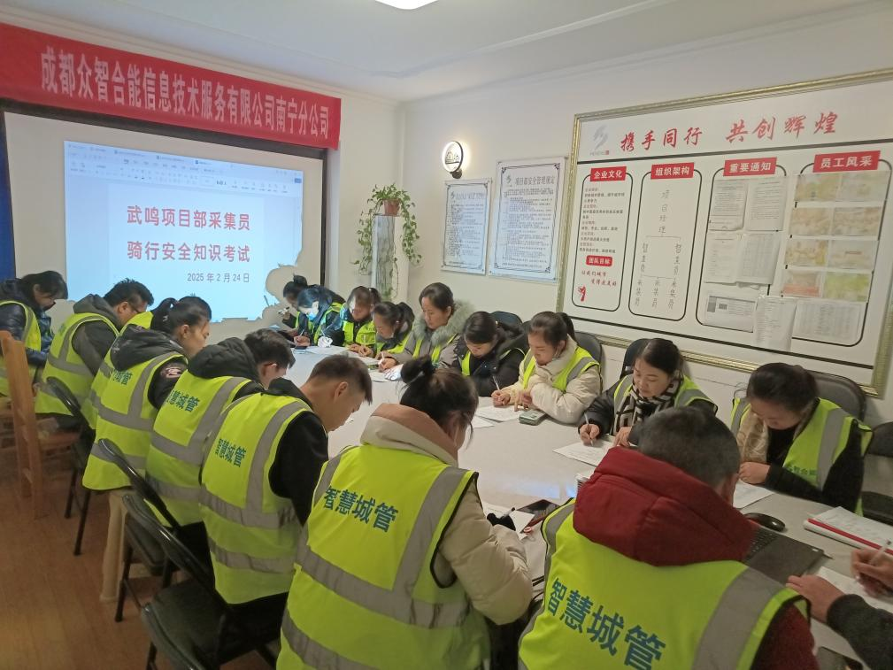 為全面提升數字城管信息采集員的交通安全意識,規范騎行行為,從而保障日常巡查工作安全高效開(kāi)展,成都眾智合能武鳴項目部于2025年2月開(kāi)展了“騎行安全知識培訓”及“騎行安全知識考試”。通過(guò)系統化培訓與考核,助力采集員提高安全意識,掌握安全技能,筑牢安全防線(xiàn),為城市管理工作的順利推進(jìn)保駕護航。