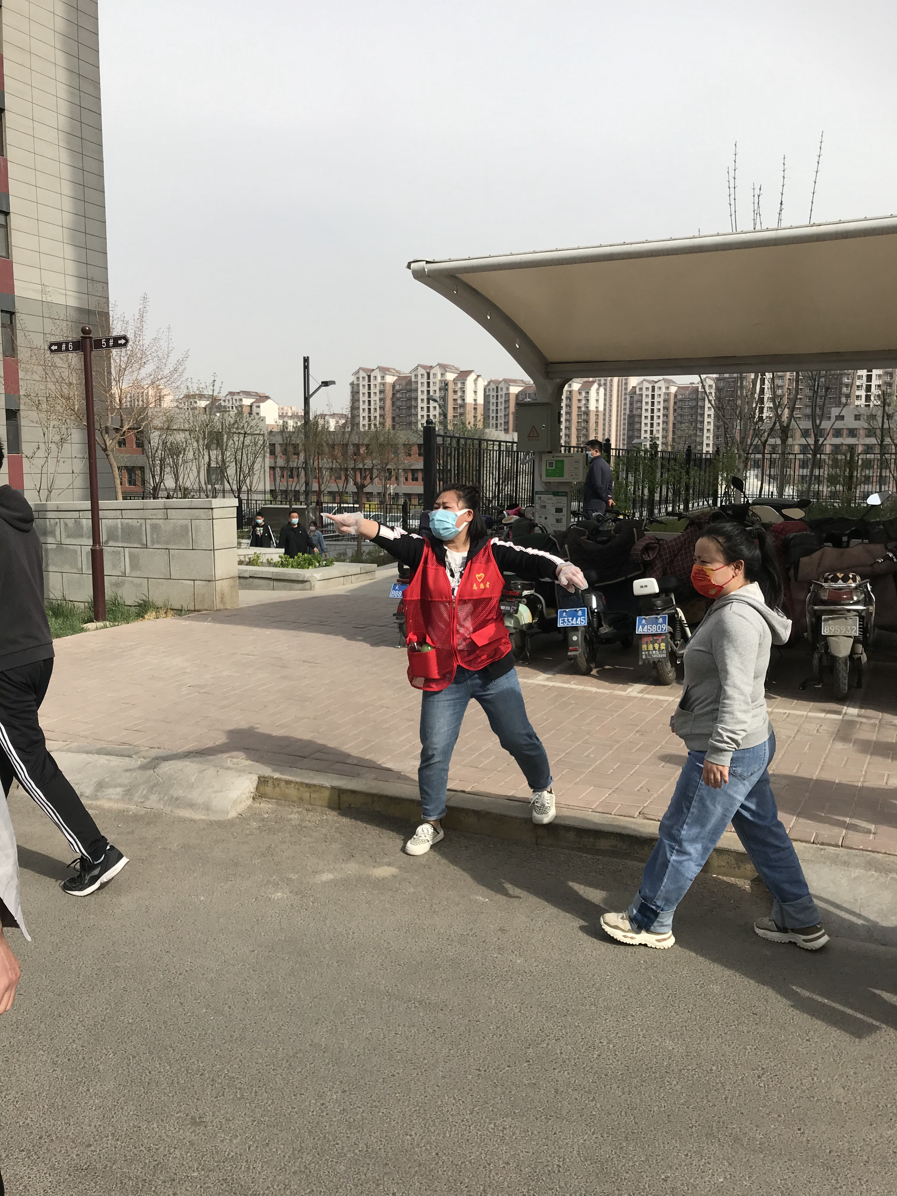 采集員田江濤、王兆銀在經(jīng)園路和國泰龍城灣B區做引導員維持秩序。